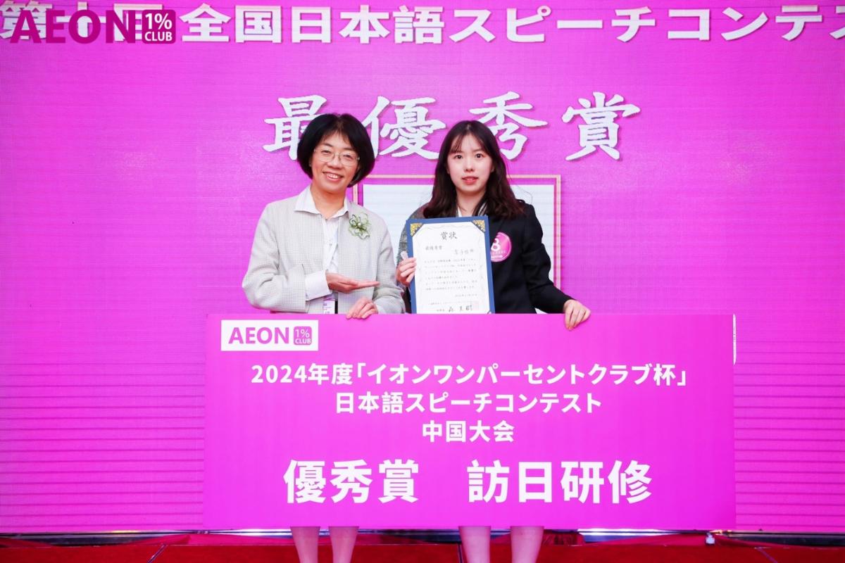(日本驻广州总领事馆总领事贵岛善子给李子怡颁奖)